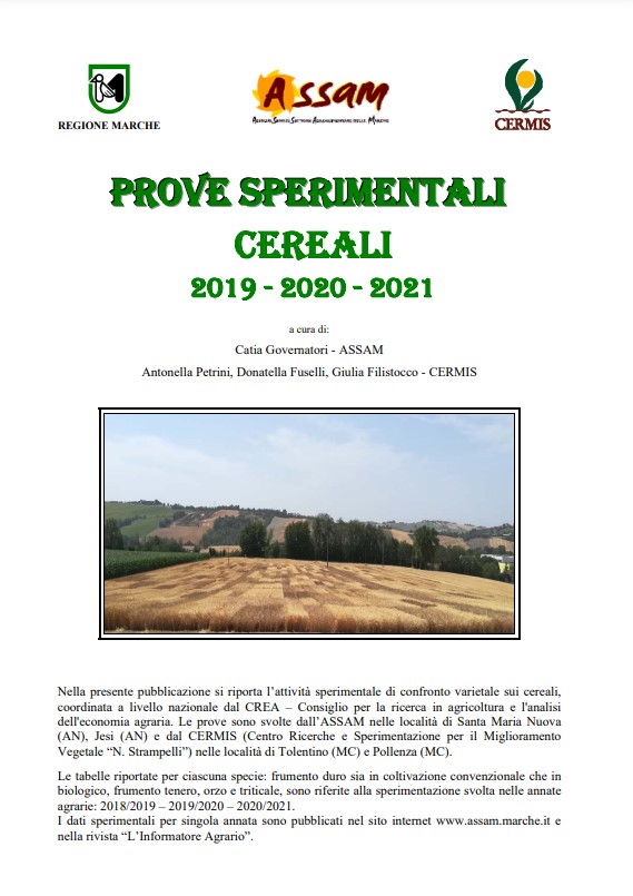 Disponibile per la consultazione on line l'opuscolo delle PROVE SPERIMENTALI CEREALI - Annate agrarie 2019 - 2021